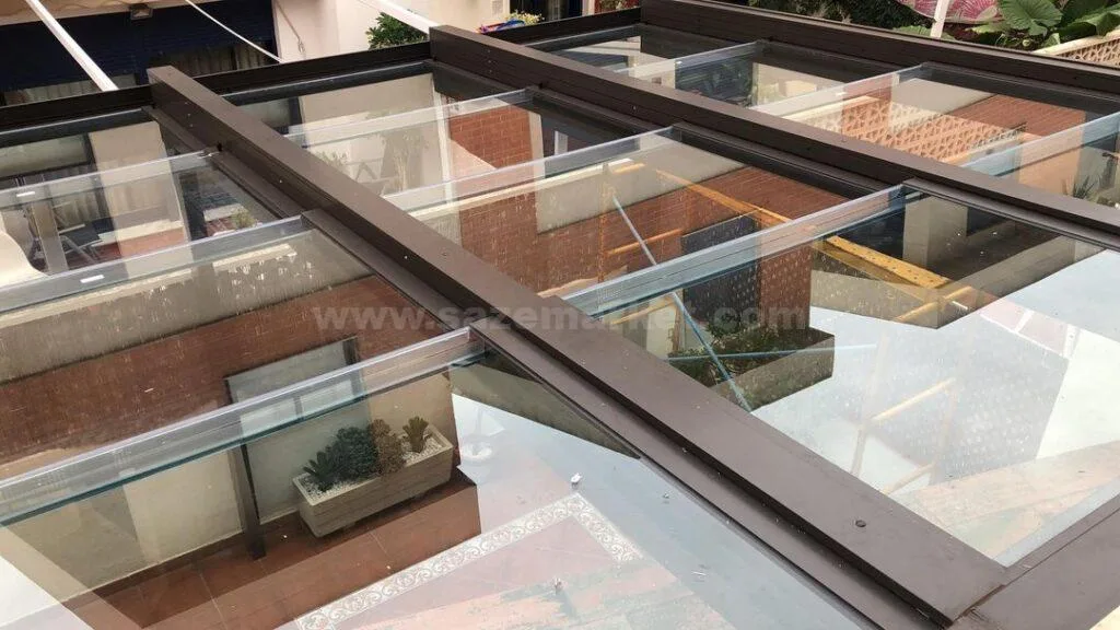 سقف متحرک شیشه ای متشکل از شیشههای نشکن و مقاوم با قدرت عبور نور فراوان